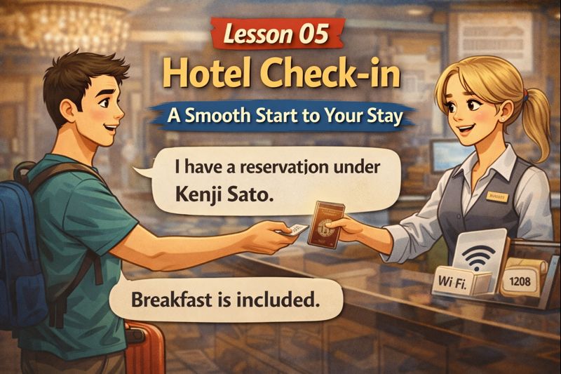 「こんにちは。予約している佐藤です。」 ホテルのチェックインって、日本語でもちょっと緊張するのに、英語になるとさらにハードルが上がりませんか?「予約名は?」「パスポートは?」「何泊?」「カードキーは何枚?」と質問がテンポよく飛んできて、頭... Deep Dive English Conversations