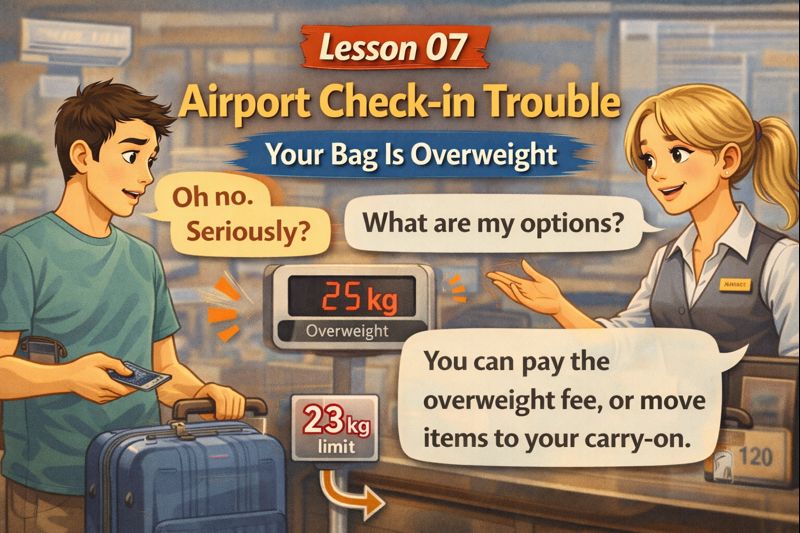 Airport Check-in Trouble(空港チェックイン)【ネイティブの英語を自分の英語に】
